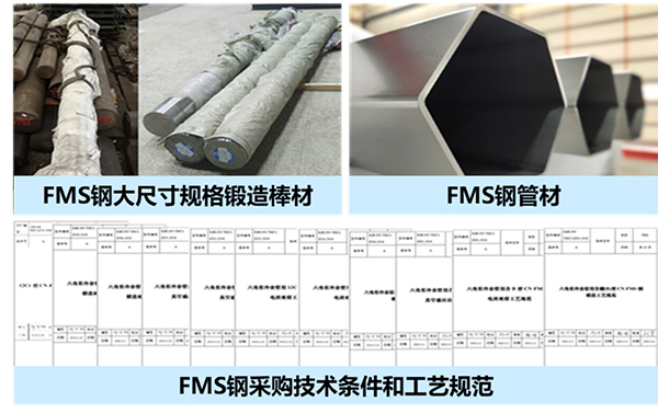 (1) 核用铁素体/马氏体耐辐照钢研制 应对四代核能系统燃料组件材料发展需求,解决了12%Cr型铁素体/马氏体耐热钢(FMS)高温组织稳定性不足、承温能力低的问题,发展出承温能力达到610oC、强韧性匹配良好、 焊接性能优异的新型FMS钢,建立了材料工程化制造、部件焊接技术路线,形成大规格锻造棒材采购技术条件和系列制造工艺规范。
