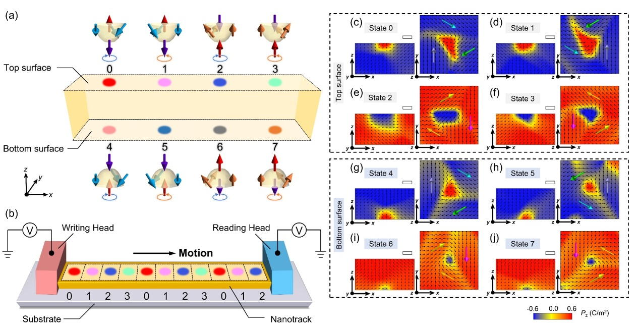 图4. 多态极性手性浮子及其在多态信息存储器中的应用示意图
