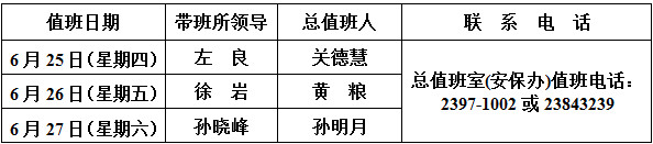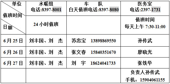 “端午节”放假期间相关部门值班表