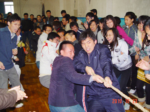 首届趣味运动会设立了“袋鼠跳袋”、“摸石头过河”、“托球接力”、“螃蟹背西瓜”、“骑士投篮”和“大力士拔河”六个项目。即有个人比赛,也有集体项目,每一项都把竞技性、趣味性、团队协作、智慧比拼融为一体,让同学们充分体验了运动的快乐,也享受了团结合作的乐趣。最终,10博2班以积28分获得团体冠军,09博2班和09硕1班分获团体亚、季军。此外, 09博2班张小丽、10硕2班殷强分别获得女子单项和男子单项冠军。