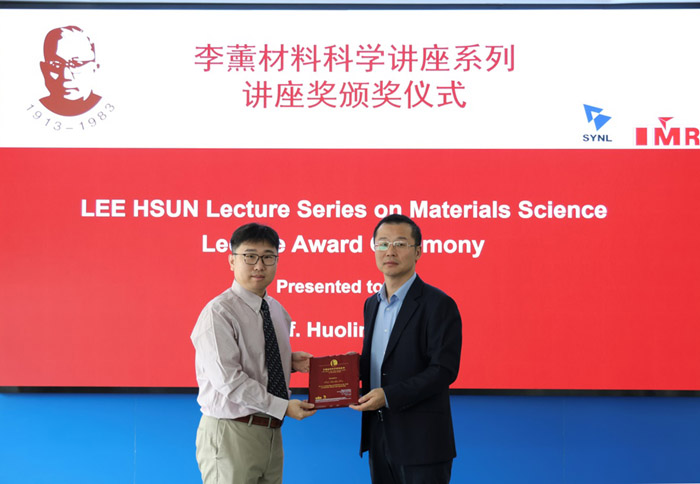 所长刘岗代表金属所向忻获麟教授颁发 “李薰讲座奖”奖牌