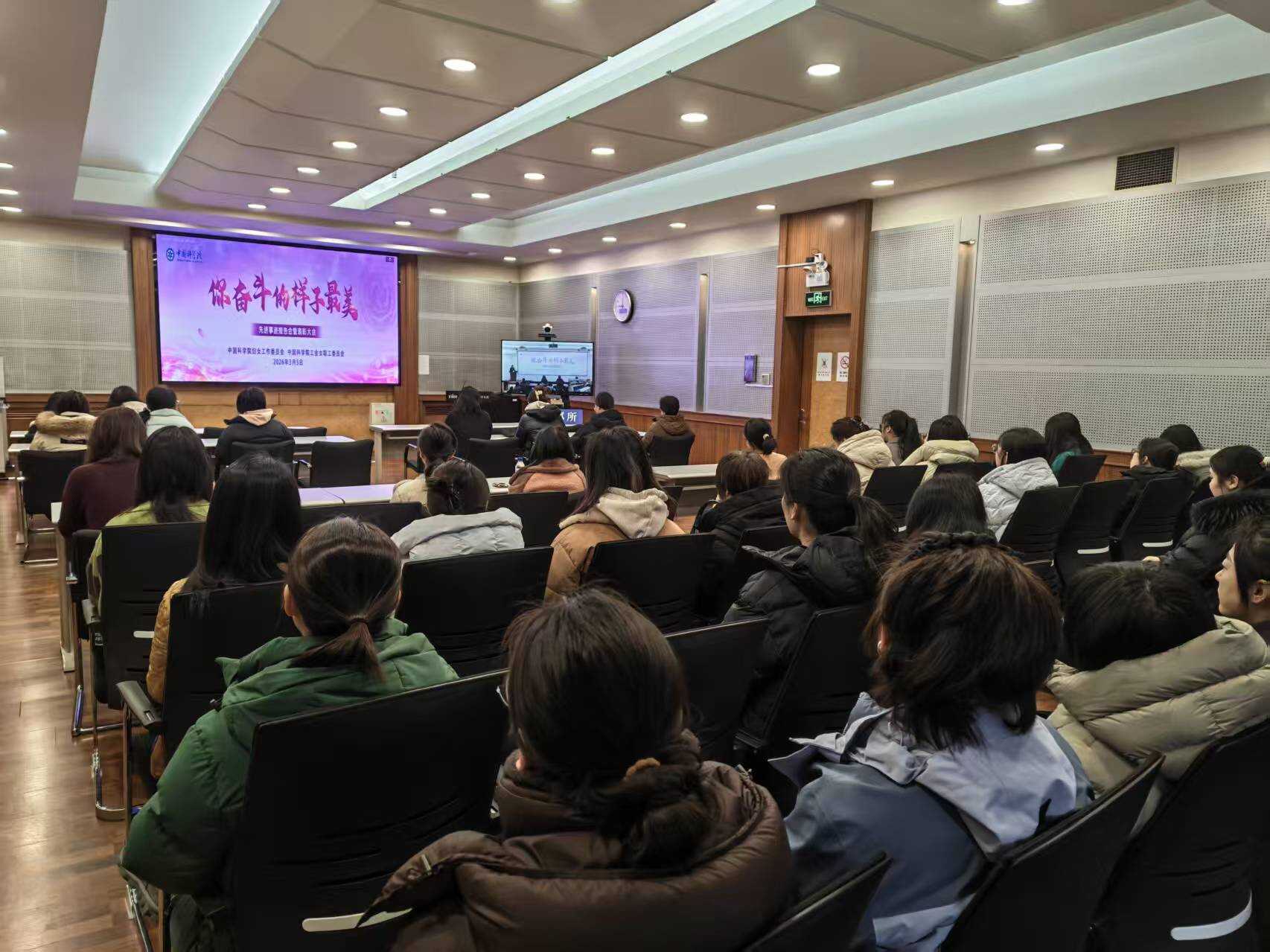 所工会在3月5日组织视频观看了中国科学院妇女工作委员会、院工会女职工委员会举办的“你奋斗的样子最美”先进事迹报告会。