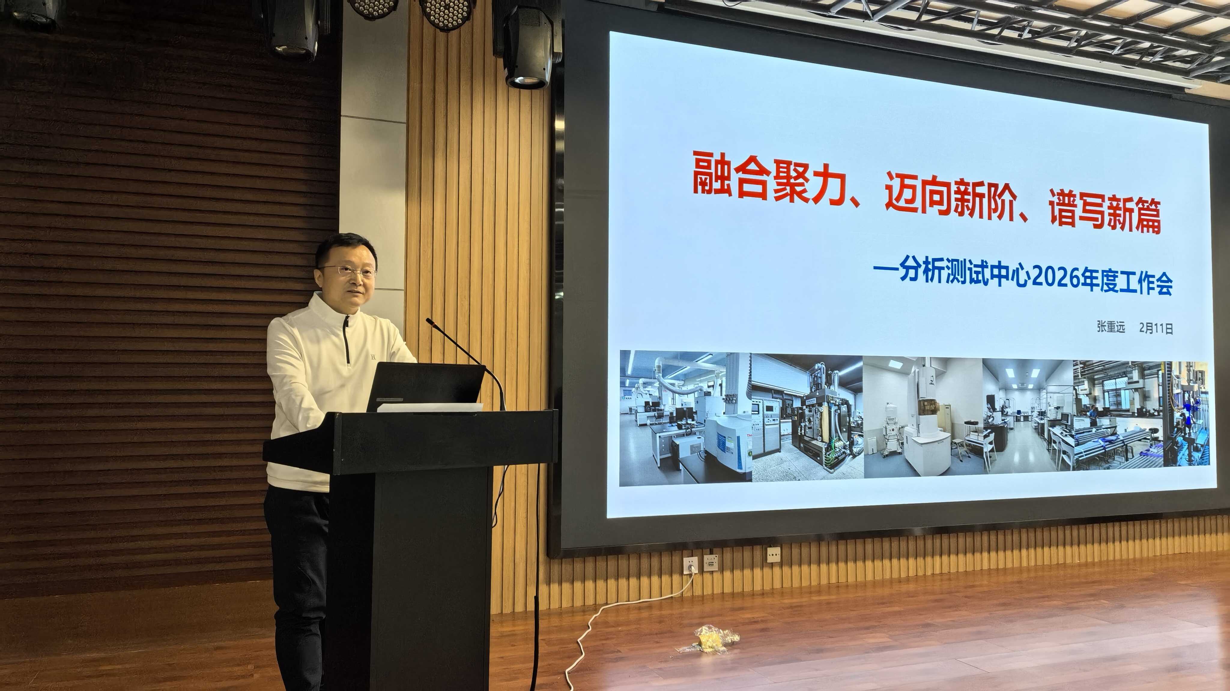 2026年2月11日上午,分析测试中心召开2026年度全体人员工作会议,地点在郭可信楼310会议室,由中心副主任姜亚南主持。