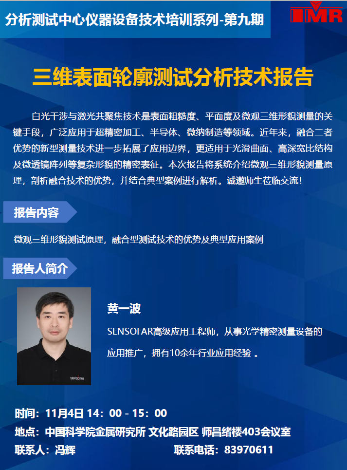 分析测试中心仪器设备技术培训系列第九期——三维表面轮廓测试分析技术报告